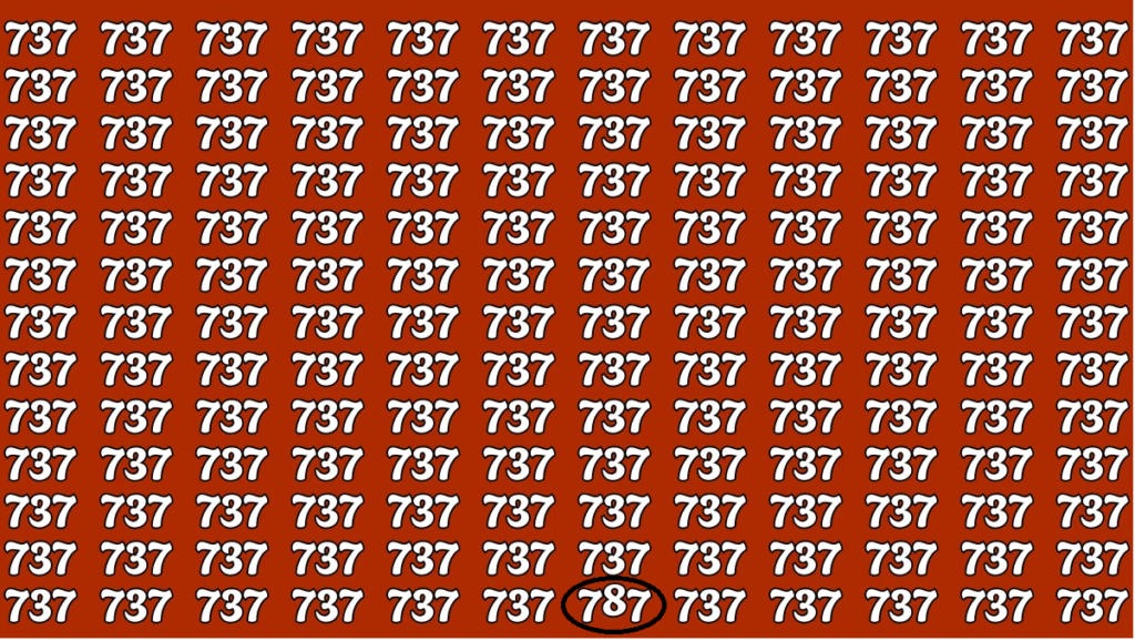 At first view, the image may appear to be a consistent grid of 737 numbers. However, the number 787 is hidden among the clutter. What is the task? Locate it in less than 7 seconds.