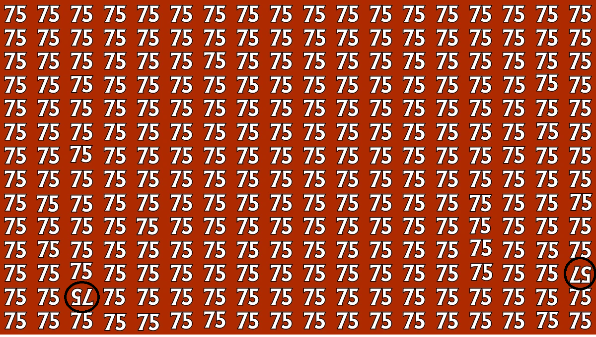 Optical illusions are an intriguing way to test your brain and improve your observation abilities. This optical illusion entails identifying two hidden inverted numbers within a grid of 75s. What’s the twist? You have just seven seconds to find them. Sounds simple, right? However, this optical illusion is intended to trick your mind, making the task appear more difficult than it is.