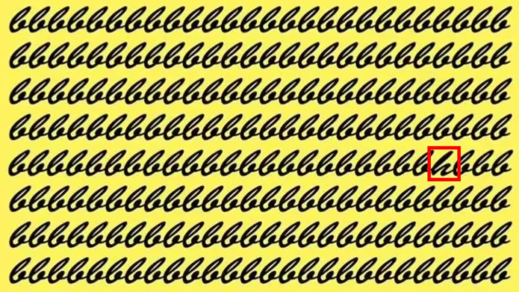 To solve this ‘find the odd letter’ optical illusion, you must be skilled at detecting patterns and subtle differences in the curves of the identical-looking ‘b’s’. This optical illusion will reveal whether you are an expert at pattern recognition, so this is an opportunity to demonstrate your visual sharpness.